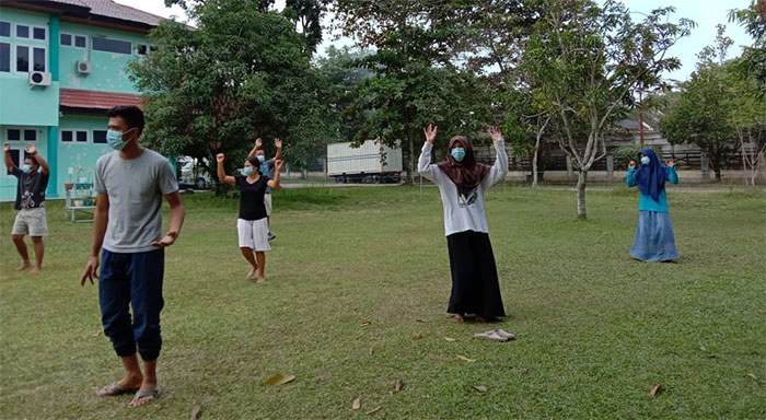 Ada 27 orang penhuni kamar- kamar isolasi Bapelkes. Setiap pagi dan petang, bila tidak hujan, semua penghuni melakukan aktivitas kebugaran seperti senam dan joging ringan mengitari lapangan yang berada tepat di depan kamar kami.