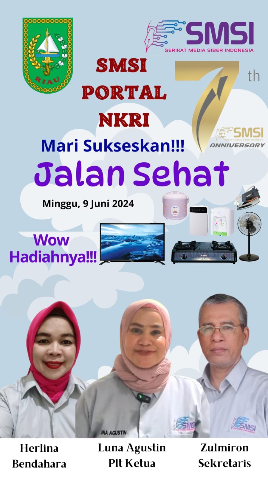 Plt Ketua SMSI Riau, Luna Agustin mengatakan jalan Sehat Bersama SMSI ini akan buka oleh Kepala Dinas Komunikasi Informatika dan Statistik (Diskominfotik) Provinsi Riau, Ikhwan Ridwan.
