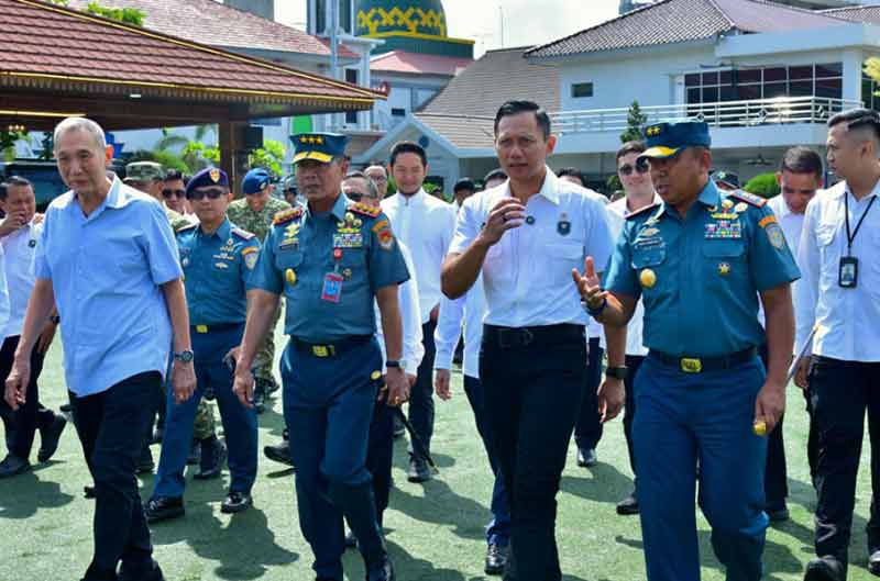 Menteri Koordinator Bidang Infrastruktur dan Pembangunan Kewilayahan Agus Harimurti Yudhoyono melaksanakan kunjungan ke Markas Komando Lintas Laut Militer Kolinlamil di Tanjung Priok, Jakarta Utara, Senin (22/12/2025), untuk meninjau kesiapan pengiriman bantuan kemanusiaan menuju daerah terdampak bencana di Aceh, Sumatera Utara, dan Sumatera Barat.