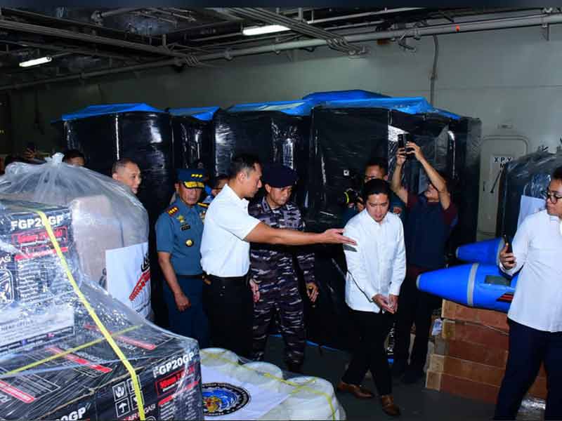 Rombongan meninjau langsung berbagai jenis bantuan yang telah dimuat di dalam KRI Semarang-594, meliputi logistik bahan pangan, air bersih, obat-obatan, pakaian, jembatan perintis, rumah modular, sarana sanitasi, fasilitas air bersih, serta perlengkapan pendukung lainnya. Bantuan tersebut merupakan hasil sinergi Kementerian Koordinator Infrastruktur dan Pembangunan Kewilayahan, kementerian dan lembaga terkait, serta dukungan TNI Angkatan Laut melalui Kolinlamil dalam pelaksanaan Operasi Militer Selain Perang.