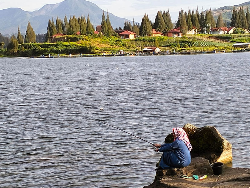 Riak air danau ditimpa cahaya, kerlipan lampu-lampu dari seberangnya yang jauh, dan bila beruntung saat bulan purnama langitnya begitu benderang sehingga kita bisa menikmati indahnya bulan purnama yang perlahan bergerak dari pucuk pepohonan pinus di seberang danau lalu subuhnya akan terbenam di balik bukit di seberang yang lain. Seperti ingin melengkapi pesona keindahan danau itu, para nelayan dengan perahu kecilnya sesekali melintas lambat sambil melempar jala atau mendayung pelan melintasi danau.