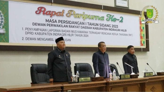 Tembilahan (Outsiders) – DPRD Kabupaten Indragiri Hilir menggelar Rapat Paripurna Ke-2 Masa Persidangan I Tahun 2023 di ruang Paripurna DPRD Inhil Jl. Soebrantas, Tembilahan, Senin pagi, (06/02/2023).