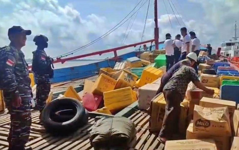 “Hasil pemeriksaan menunjukkan KM. Jasa Kita Bersama mengangkut 83 ballpress dan 171 kotak berisi berbagai makanan dan minuman, sementara KM. King Bee membawa 73 ballpress, 69 kotak makanan dan minuman, serta tiga buah ban mobil,” ujar Letkol Agung.