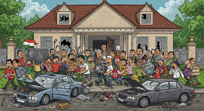 Di titik inilah penjarahan rumah anggota DPR menjadi simbol. Publik memaknainya sebagai pembalikan keadaan. Jika selama ini aset rakyat dirampas lewat korupsi, maka kini rakyat merampas balik, meski salah jalur, meski melawan hukum.
