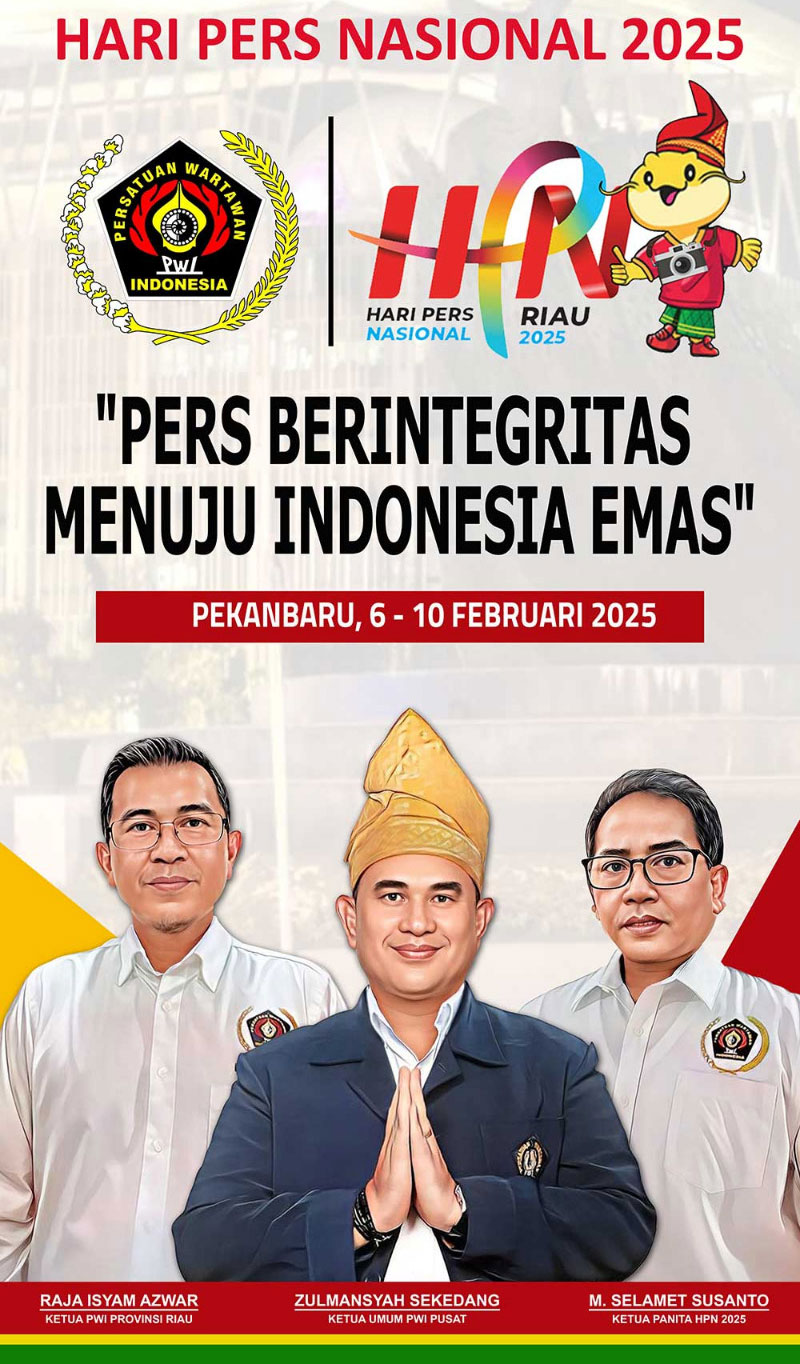 “Alhamdulillah, terima kasih kepada PWI Riau yang sudah siap 100 persen sebagai tuan rumah HPN 2025,” ungkap Ketua Umum Persatuan Wartawan Indonesia (PWI) Pusat Zulmansyah Sekedang selaku Penanggung Jawab HPN 2025 di Riau didampingi Ketua PWI Riau Raja Isyam Azwar kepada wartawan di Pekanbaru, Rabu (29/01/2025) sore.