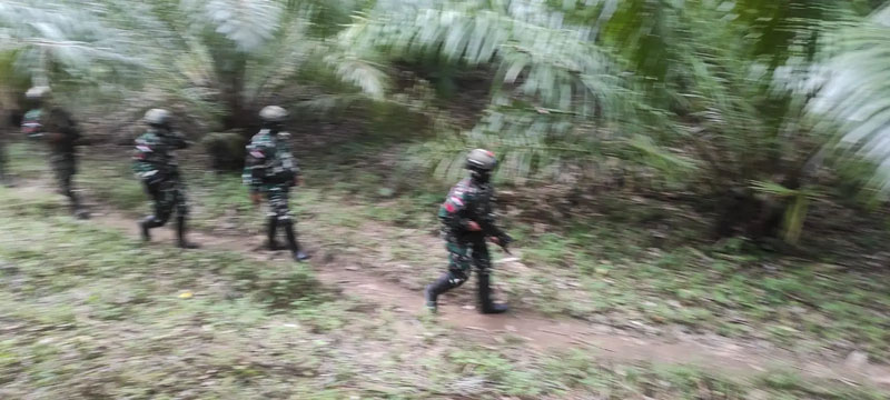 Komandan Pos Bantan, Letda Sugeng turut mendamping dalam melintasi hutan lebat melintasi salah satu jalur tikus tersebut.
