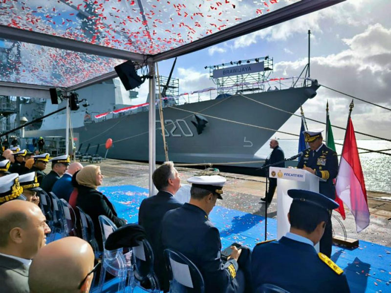 Sebanyak dua kapal perang buatan Italia akan memperkuat jajaran TNI Angkatan Laut. Kepala Staf Angkatan Laut (Kasal) Laksamana TNI Dr. Muhammad Ali didampingi Ketua Umum Jalasenastri Ny. Fera Muhammad Ali memimpin upacara pemberian nama secara simbolis (Shipnaming) KRI Brawijaya-320 dan KRI Prabu Siliwangi-321 di galangan kapal Fincantieri Muggiano, Italia, Rabu (29/1/2025).