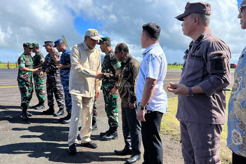 Kedatangan Menteri Pertahanan disambut langsung oleh Pj. Bupati Pulau Morotai, Burnawan, bersama dengan Sekretaris Daerah Kab. Pulau Morotai, Muhammad Umar Ali, Jajaran Forkopimda dan Para Pimpinan OPD Lingkup Pemda Morotai. Dalam sambutannya, Pj. Bupati Pulau Morotai menyampaikan rasa hormat dan terima kasih atas kunjungan kerja ini yang dinilai sangat strategis bagi wilayah Morotai, mengingat Pulau Morotai memiliki nilai historis dalam sejarah pertahanan Indonesia.