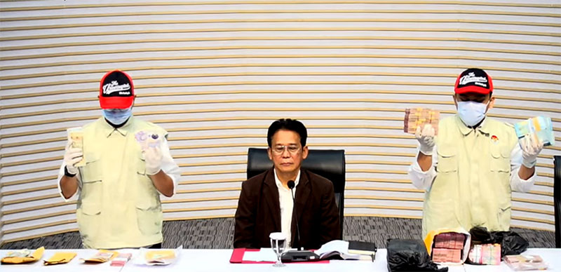 Dalam konferensi pers itu, KPK juga menampilkan barang bukti berupa uang tunai dalam berbagai mata uang, yakni rupiah, dolar Amerika Serikat, dolar Singapura, dan poundsterling, dengan total senilai sekitar Rp1,6 miliar.