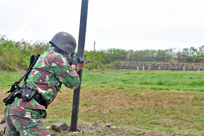Serda Marinir Zaenudin sebagai pelatih menembak tempur menyampaikan kepada seluruh atlet agar pada saat menembak memperhatikan faktor keamanan baik personel maupun material serta mengikuti seluruh instruksi dari pelatih.
