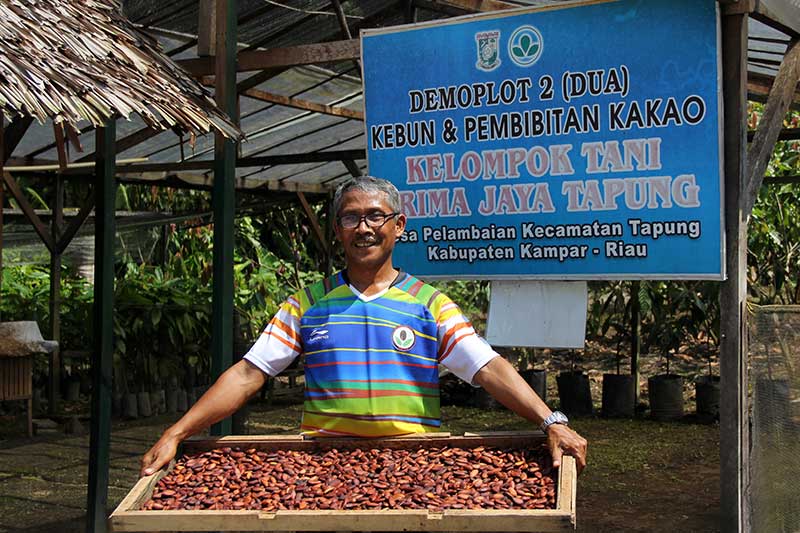 “Setiap hari saya memeriksa buah yang matang, kemudian biji cokelat akan dijemur selama 3 atau 4 hari untuk mendapatkan kualitas yang bagus. Saya yakin sambil menanti buah pasir sawit, Kakaopun terasa manis,” terangnya dengan fasih.