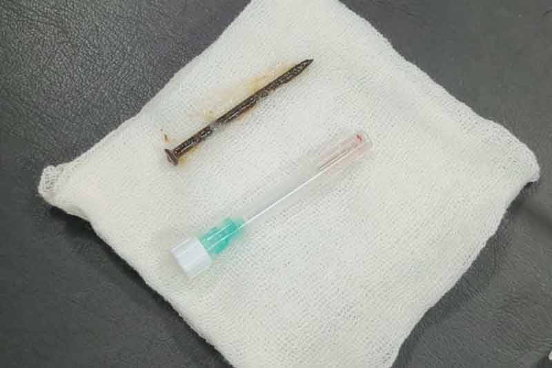 “Alhamdulillah, tindakan berjalan lancar dan paku berhasil dikeluarkan tanpa pembedahan,” ujarnya.