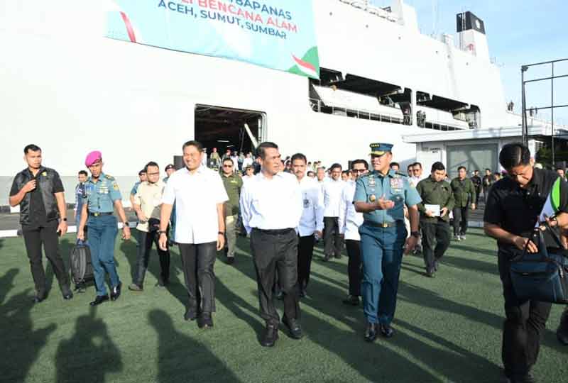Upaya percepatan penanganan pasca bencana alam di Aceh dan Sumatera terus dilakukan TNI AL dengan mengerahkan bantuan logistik dan Pasukan Zeni Marinir menggunakan KRI Makassar-590.