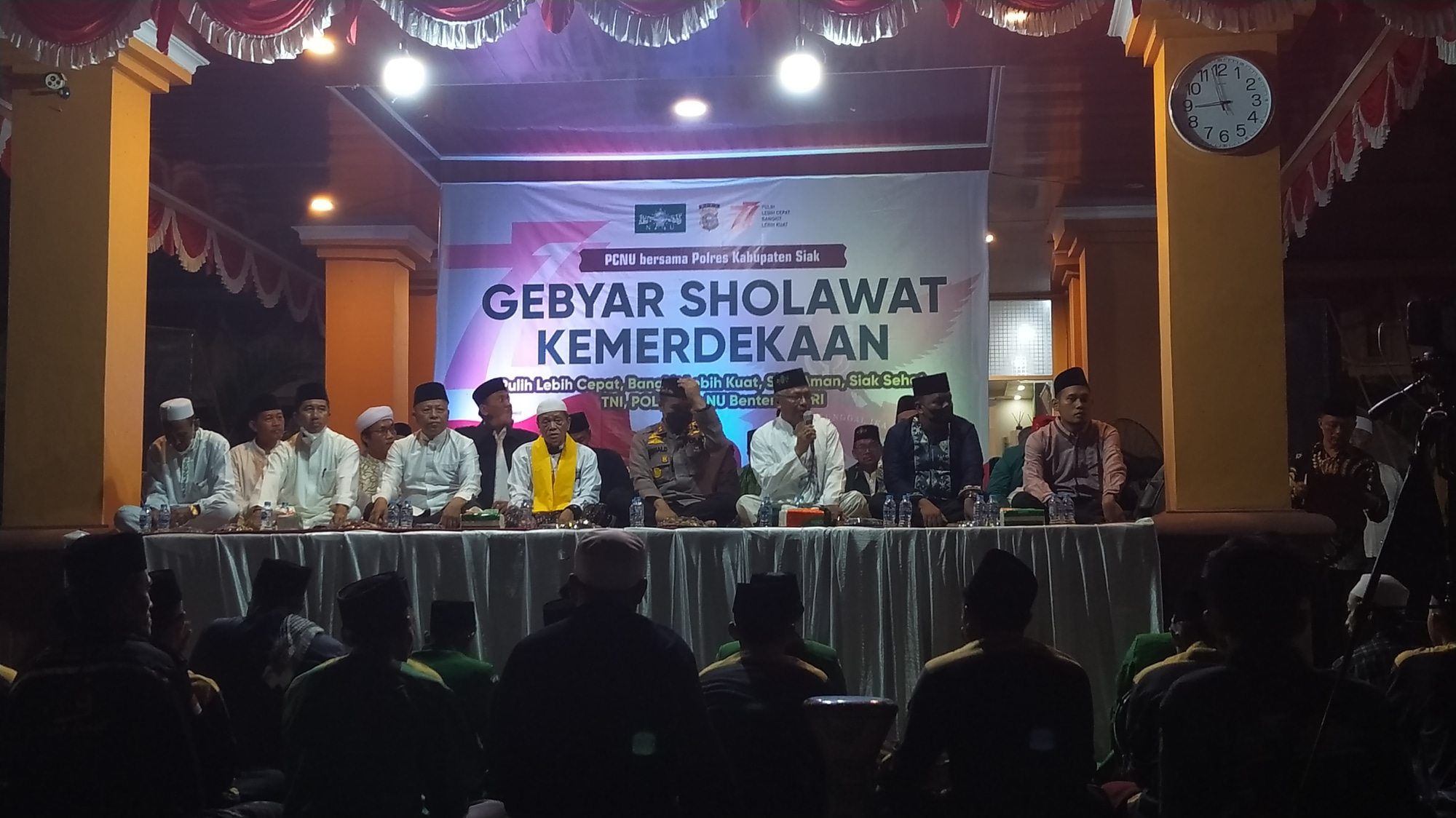 Siak (Outsiders) -PCNU bersama Polres Kabupaten Siak gelar Gebyar Shalawat Kemerdekaan dalam rangka memperingati Hari Ulang Tahun (HUT) Kemerdekaan Republik Indonesia ke-77, di halaman Mapolres Siak, Dayun, Sabtu malam.(13/08/2022)