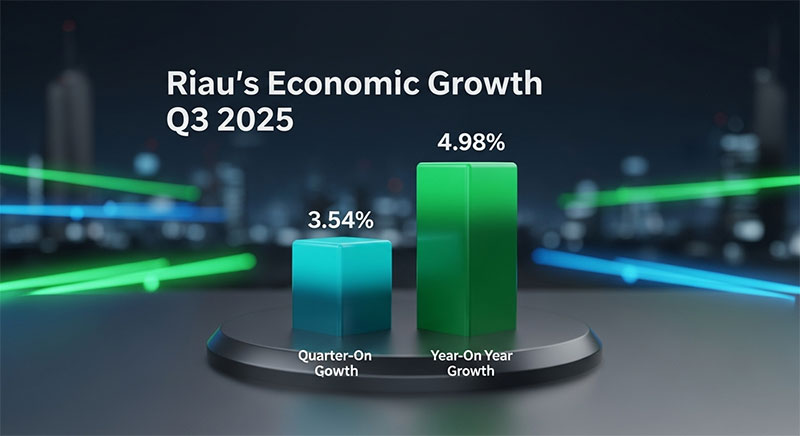 Pekanbaru (Outsiders) – Perekonomian Provinsi Riau mencatat kinerja yang solid pada triwulan III-2025. Berdasarkan data Badan Pusat Statistik (BPS), ekonomi Riau tumbuh 3,54 persen dibanding triwulan sebelumnya (q-to-q) dan 4,98 persen dibanding periode yang sama tahun lalu (y-on-y).