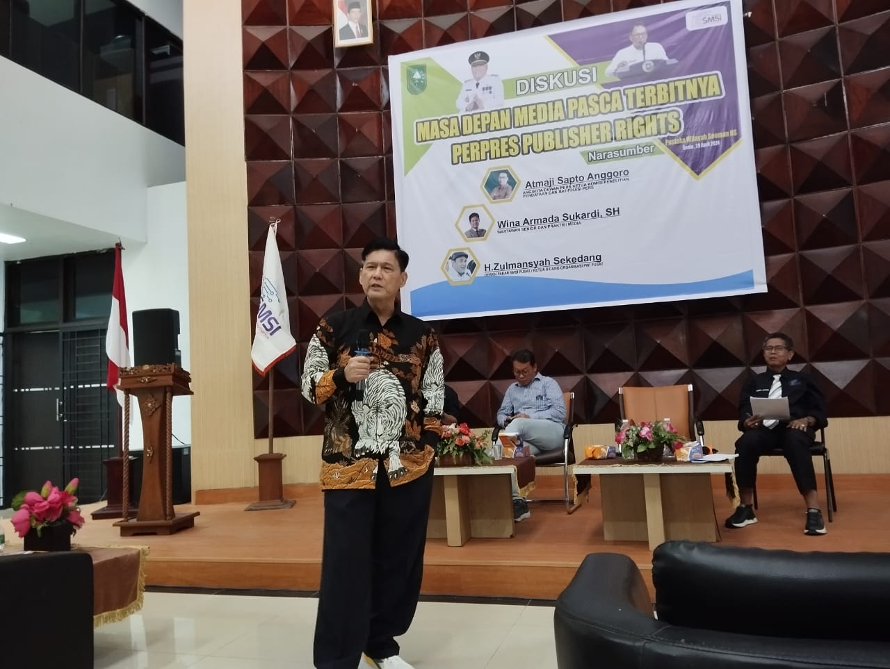 Sikap pro dan kontra itu muncul dalam Diskusi bertajuk ‘’Masa Depan Media Pasca Terbitnya Perpres Publisher Rights’’ di Auditorium H Ismail Suko Pustaka Wilayah Soeman HS Provinsi Riau, Pekanbaru, dimoderatori oleh H. Fendri Jaswir.