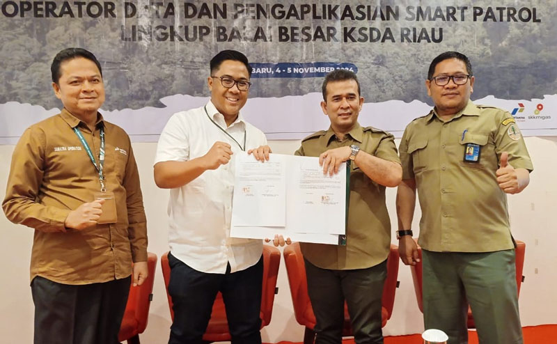 Pekanbaru (Outsiders) – Dukung Konservasi, bersama mitra LPPM UMRI, PT Pertamina Hulu Rokan (PHR) bantuan perangkat patroli pintar (Smart Patrol) yang diterima langsung oleh Kepala Balai Besar Konservasi Sumber Daya Alam (BBKSDA) Riau Genman Suhefti Hasibuan di acara pembukaan Bimbingan Teknis Operator Data dan Pengaplikasian Smart Patrol Lingkup BBKSDA Riau, Pekanbaru, Senin (4/11/2024).