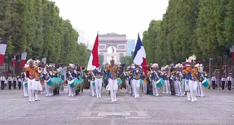 Sebanyak 500 personel TNI dari tiga matra — TNI AD, TNI AL, dan TNI AU — turut serta dalam parade militer tersebut, mengenakan seragam kebanggaan dan membawa bendera Merah Putih. Ini merupakan pertama kalinya pasukan Indonesia tampil dalam parade militer Bastille Day yang dikenal sebagai salah satu acara militer paling prestisius di dunia.
