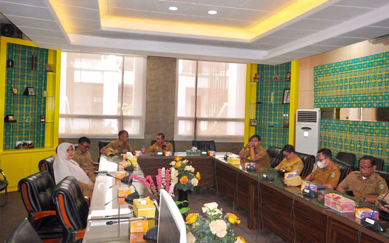 Rapat berlangsung secara daring melalui Zoom Meeting bersama Kementerian Dalam Negeri (Kemendagri), dari Ruang Pucuk Rebung, Kantor Bupati Siak, Senin (21/4/2025).