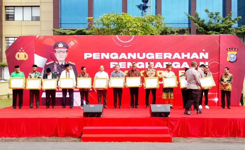 Kapolda Riau Jenderal M. Iqbal menyampaikan dalam sambutannya, penghargaan tersebut diberikan atas kerjasama semua pihak dalam mendukung kinerja Polda Riau.