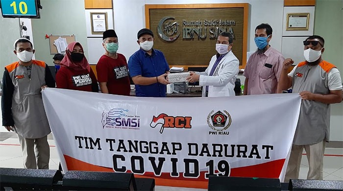 Pekanbaru (Outsiders) – Riau Care Indonesia (RCI) didukung penuh oleh Persatuan Wartawan Indonesia (PWI) dan Serikat Media Siber Indonesia (SMSI) Provinsi Riau menyerahkan bantuan Alat Pelindung Diri (APD) ke Rumah Sakit Ibnu Sina Pekanbaru, Kamis (23/4/2020) kemarin siang.