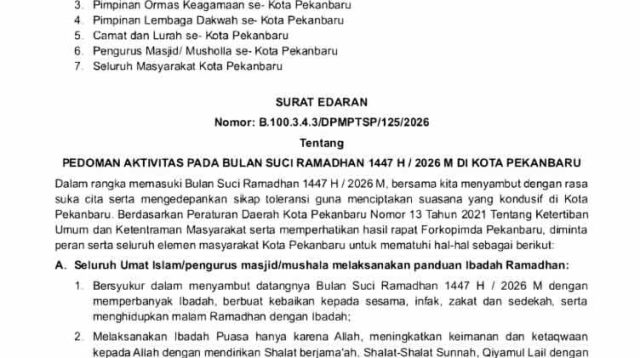 Pekanbaru (Outsiders) – Pemerintah Kota Pekanbaru menetapkan seluruh tempat hiburan malam wajib tutup selama Ramadan […]