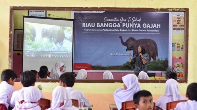 Upaya menjaga kelestarian alam dan habitat Gajah Sumatera terus dilakukan PT Pertamina Hulu Rokan (PHR) WK Rokan bersama Rimba Satwa Foundations (RSF), salah satunya melalui kegiatan Conservation Goes To School.