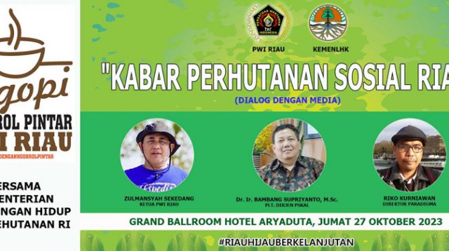 Persatuan Wartawan Indonesia (PWI) Riau bersama Kementerian Lingkungan Hidup dan Kehutanan (LHK) menyelenggarakan acara Ngobrol Pintar (NgoPi) bersama wartawan media massa lokal dan nasional, Jumat (27/10/23) di Hotel Arya Duta Pekanbaru.