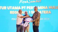 T Pertamina Hulu Rokan (PHR) menggelar upacara pisah sambut Direktur Utama (Dirut) sebelumnya Jaffee Arizon Suardin kepada Chalid Said Salim, selaku Dirut PHR yang baru di Aula Pertemuan RCC Rumbai, Pekanbaru, Selasa (23/5/2023).