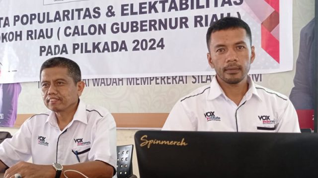 Lembaga survei ‘VOXinstitute’ kembali merilis hasil survei pra Pemilihan Kepala Daerah (Pilkada) tingkat Provinsi Riau tahun 2024. Hasilnya, elektabilitas mantan Gubernur Riau Syamsuar masih bertengger di posisi tertinggi, disusul Edy Natar Nasution.