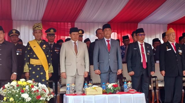 Tiga Pimpinan DPRD Kabupaten Siak menghadiri Upacara Peringatan Hari Kemerdekaan RI ke 79 di Lapangan Upacara Kantor Bupati Siak, Kelurahan Sungai Mempura, Sabtu (17/08/24).