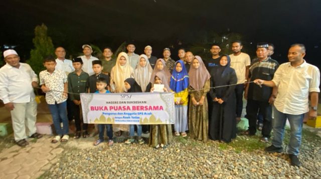 Pengurus dan pimpinan media anggota Serikat Perusahaan Pers (SPS) Provinsi Aceh menggelar buka puasa bersama anak yatim, Jum’at, 05 April 2024.