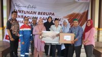 Adri tak dapat menyembunyikan rasa senangnya saat menerima bantuan paket sembako dari PT Pertamina Hulu Rokan (PHR) di Kantor Camat Minas, Siak, Jumat (17/3). Bersama warga lainnya, ia semringah membawa paket sembako pulang ke rumah.