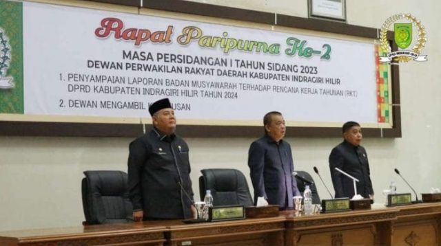 DPRD Kabupaten Indragiri Hilir menggelar Rapat Paripurna Ke-2 Masa Persidangan I Tahun 2023 di ruang Paripurna DPRD Inhil Jl. Soebrantas, Tembilahan, Senin pagi, (06/02/2023).