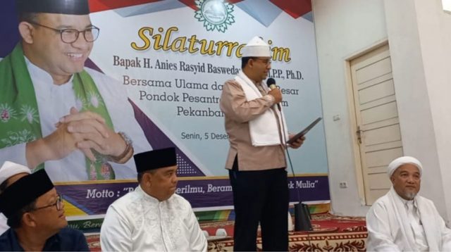 Anies Rasyid Baswedan disambut hangat ulama, masyarakat, dan santri Pondok Pesantren Babussalam, Pekanbaru, Senin (5/12/2022) siang. Alunan sholawat mengiringi langkah Anies saat memasuki ruang tamu di pesantren Babussalam ini.