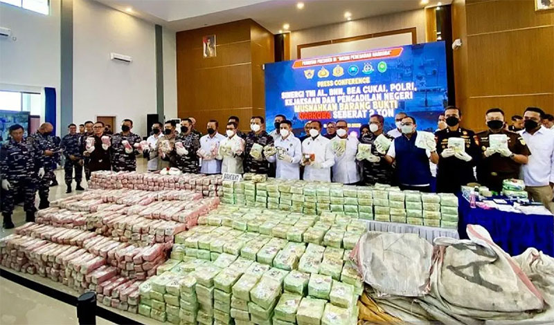 Batam (Outsiders) – Tentara Nasional Indonesia Angkatan Laut (TNI AL) bersama aparat penegak hukum dan instansi terkait memusnahkan barang bukti narkotika seberat 2,061 ton hasil penggagalan penyelundupan di perairan Kepulauan Riau. Total nilai barang haram tersebut diperkirakan mencapai Rp7,5 triliun.
