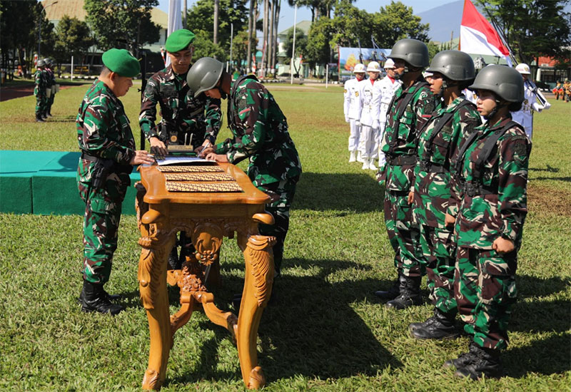 Upacara diakhiri dengan pekikan yel-yel para peserta sebagai simbol jiwa korsa dan kebanggaan menjadi garda cadangan pertahanan Indonesia.