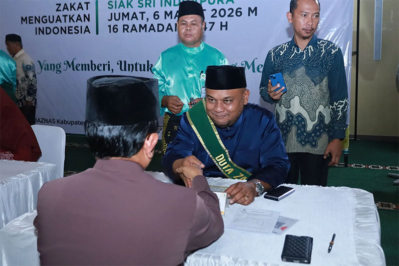 Ajakan tersebut disampaikan dalam rangkaian kegiatan Gerakan Masyarakat Siak Berzakat ke-XIII, pendistribusian zakat pola konsumtif tahap I Baznas Siak tahun 2026, serta program Siak Berwakaf yang digelar di Masjid Islamic Center Siak, Jumat (6/3/2026).